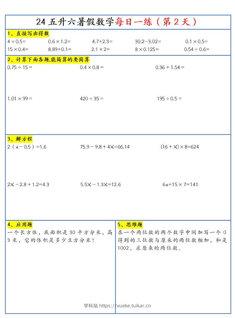 【新版】五升六暑假作业五下数学每日一练-30天admin6月23日发布关注私信03315【新版】五升六暑假作业五下数学每日一练-30天此内容为付费资源,请付费后查看会员专属资源黄金会员免费您暂无购买权限,请先开通会员开通会员格式pdf页数30 页大小1.60 MB付费资源 ——预览已结束,还剩28页未读——开通会员后可免费下载高清完整文档 © 版权声明文章版权归作者所有,未经允许请勿转载。THE END小学数学 喜欢就支持一下吧点赞15 分享QQ空间微博QQ好友海报分享复制链接收藏