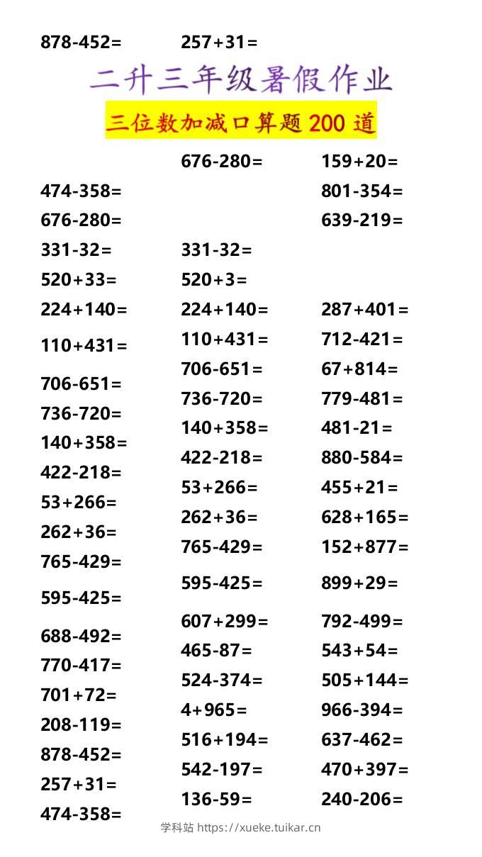 二升三年级暑假作业三位数加减口算题200道-三上数学admin7月5日发布关注私信0418二升三年级暑假作业三位数加减口算题200道-三上数学此内容为付费资源,请付费后查看会员专属资源黄金会员免费您暂无购买权限,请先开通会员开通会员格式docx页数4 页大小13.68 KB付费资源 ——预览已结束,还剩2页未读——开通会员后可免费下载高清完整文档 © 版权声明文章版权归作者所有,未经允许请勿转载。THE END小学数学 喜欢就支持一下吧点赞8 分享QQ空间微博QQ好友海报分享复制链接收藏