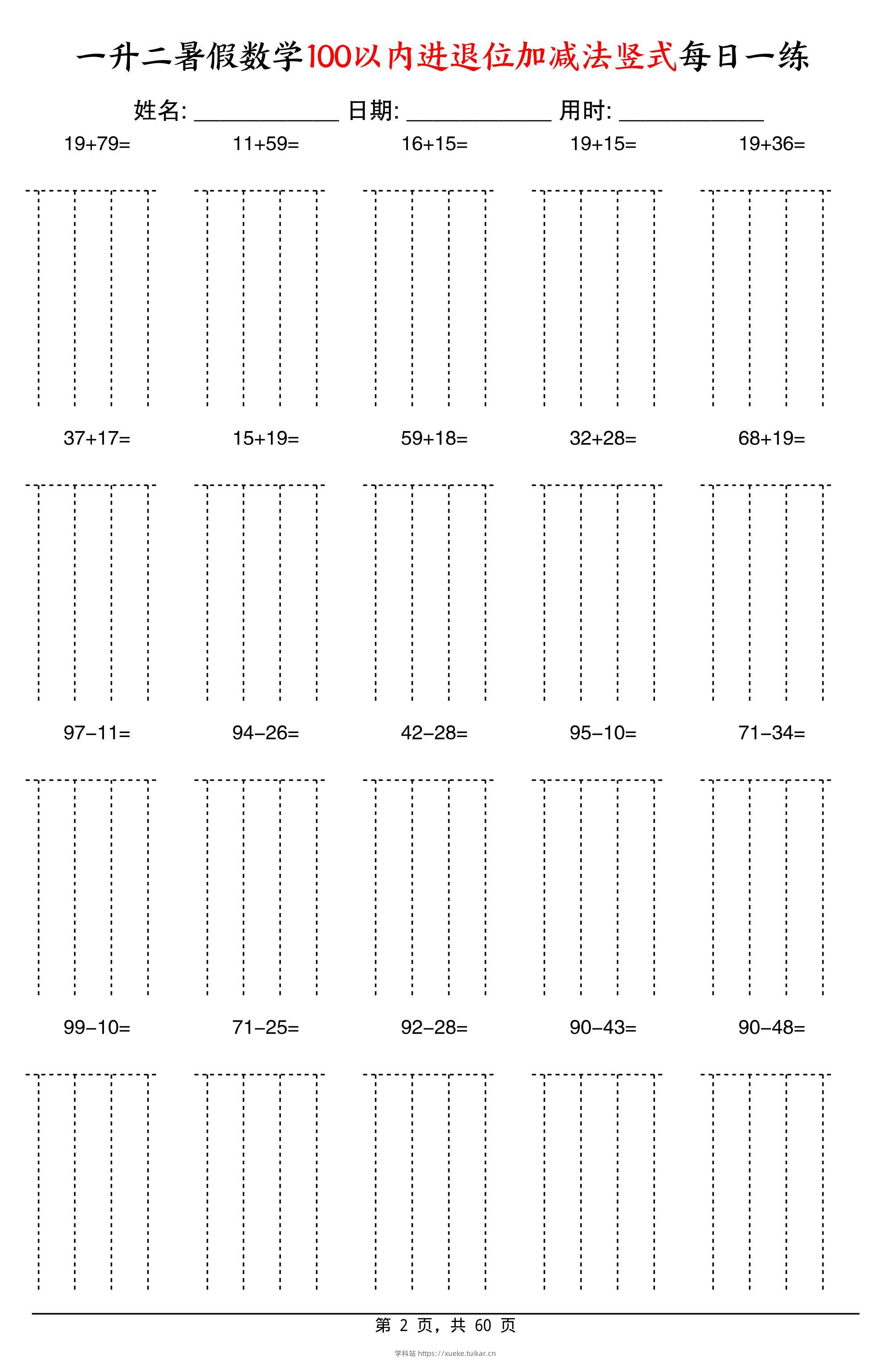 一升二暑假数学100以内进退位加减法竖式每日一练60天-二上数学admin7月10日发布关注私信04913一升二暑假数学100以内进退位加减法竖式每日一练60天-二上数学此内容为付费资源,请付费后查看会员专属资源黄金会员免费您暂无购买权限,请先开通会员开通会员格式pdf页数60 页大小2.34 MB付费资源 ——预览已结束,还剩58页未读——开通会员后可免费下载高清完整文档 © 版权声明文章版权归作者所有,未经允许请勿转载。THE END小学数学 喜欢就支持一下吧点赞13 分享QQ空间微博QQ好友海报分享复制链接收藏