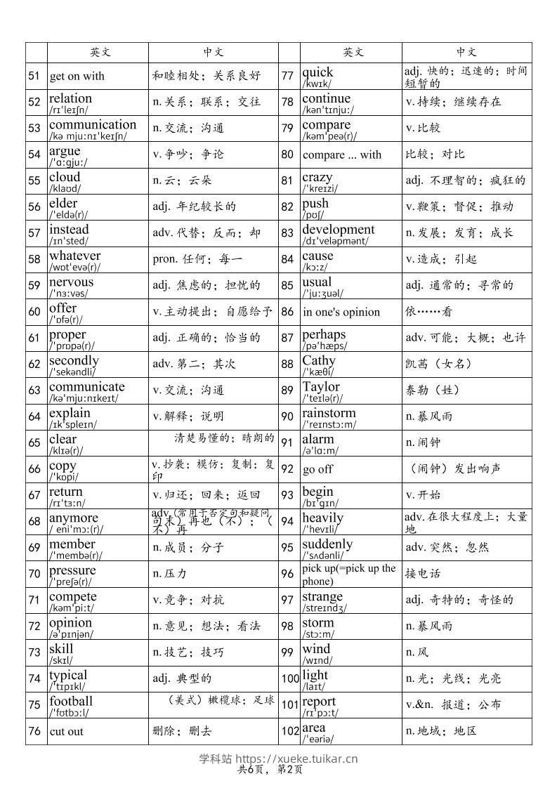 2025秋鲁教版八上英语单词表-part1admin7月14日发布关注私信027142025秋鲁教版八上英语单词表-part1此内容为付费资源,请付费后查看会员专属资源黄金会员免费您暂无购买权限,请先开通会员开通会员格式pdf页数6 页大小228.50 KB付费资源 ——预览已结束,还剩4页未读——开通会员后可免费下载高清完整文档 © 版权声明文章版权归作者所有,未经允许请勿转载。THE END初中英语 喜欢就支持一下吧点赞14 分享QQ空间微博QQ好友海报分享复制链接收藏