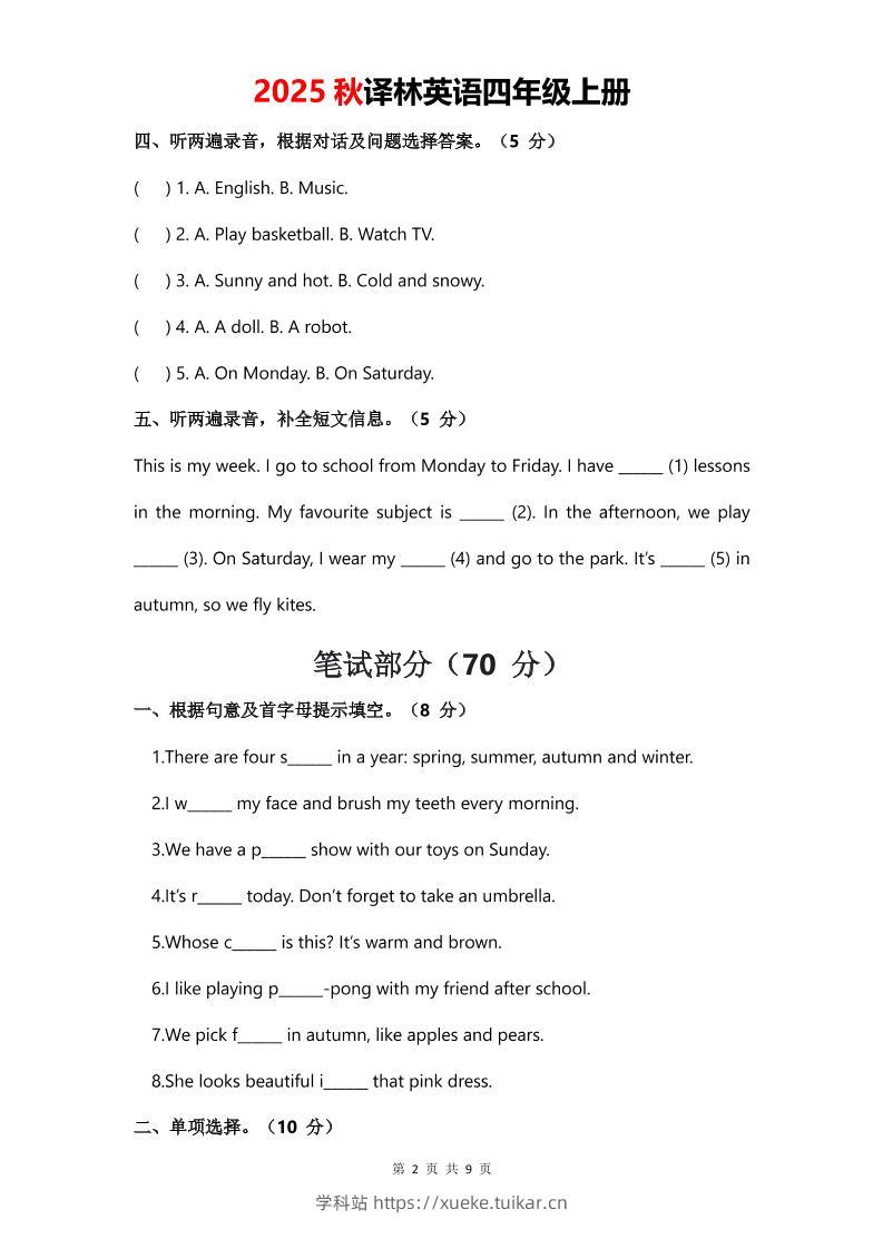 2025年秋译林版四上英语期末测试卷(无音频)admin7月24日发布关注私信048122025年秋译林版四上英语期末测试卷(无音频)此内容为付费资源,请付费后查看会员专属资源黄金会员免费您暂无购买权限,请先开通会员开通会员格式pdf页数9 页大小254.58 KB付费资源 ——预览已结束,还剩7页未读——开通会员后可免费下载高清完整文档 © 版权声明文章版权归作者所有,未经允许请勿转载。THE END小学英语 喜欢就支持一下吧点赞12 分享QQ空间微博QQ好友海报分享复制链接收藏