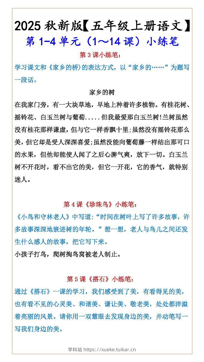 【2025秋新版】【五年级上册语文】第1-4单元(1~14课)小练笔admin7月27日发布关注私信03112【2025秋新版】【五年级上册语文】第1-4单元(1~14课)小练笔此内容为付费资源,请付费后查看会员专属资源黄金会员免费您暂无购买权限,请先开通会员开通会员格式pdf页数5 页大小150.78 KB付费资源 ——预览已结束,还剩3页未读——开通会员后可免费下载高清完整文档 © 版权声明文章版权归作者所有,未经允许请勿转载。THE END小学语文 喜欢就支持一下吧点赞12 分享QQ空间微博QQ好友海报分享复制链接收藏