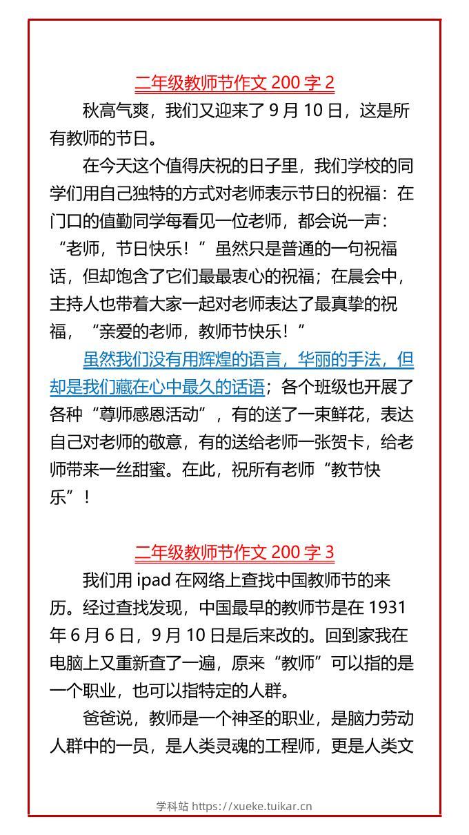 【2025秋新版】小学二年级必写教师节优秀作文10篇汇总-二上语文admin7月27日发布关注私信0419【2025秋新版】小学二年级必写教师节优秀作文10篇汇总-二上语文此内容为付费资源,请付费后查看会员专属资源黄金会员免费您暂无购买权限,请先开通会员开通会员格式pdf页数7 页大小271.62 KB付费资源 ——预览已结束,还剩5页未读——开通会员后可免费下载高清完整文档 © 版权声明文章版权归作者所有,未经允许请勿转载。THE END小学语文 喜欢就支持一下吧点赞9 分享QQ空间微博QQ好友海报分享复制链接收藏