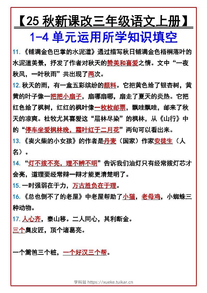 【2025秋新版】【三年级语文上册】1-4单元运用所学知识填空admin7月28日发布关注私信0498【2025秋新版】【三年级语文上册】1-4单元运用所学知识填空此内容为付费资源,请付费后查看会员专属资源黄金会员免费您暂无购买权限,请先开通会员开通会员格式pdf页数3 页大小76.17 KB付费资源 ——预览已结束,还剩1页未读——开通会员后可免费下载高清完整文档 © 版权声明文章版权归作者所有,未经允许请勿转载。THE END小学语文 喜欢就支持一下吧点赞8 分享QQ空间微博QQ好友海报分享复制链接收藏