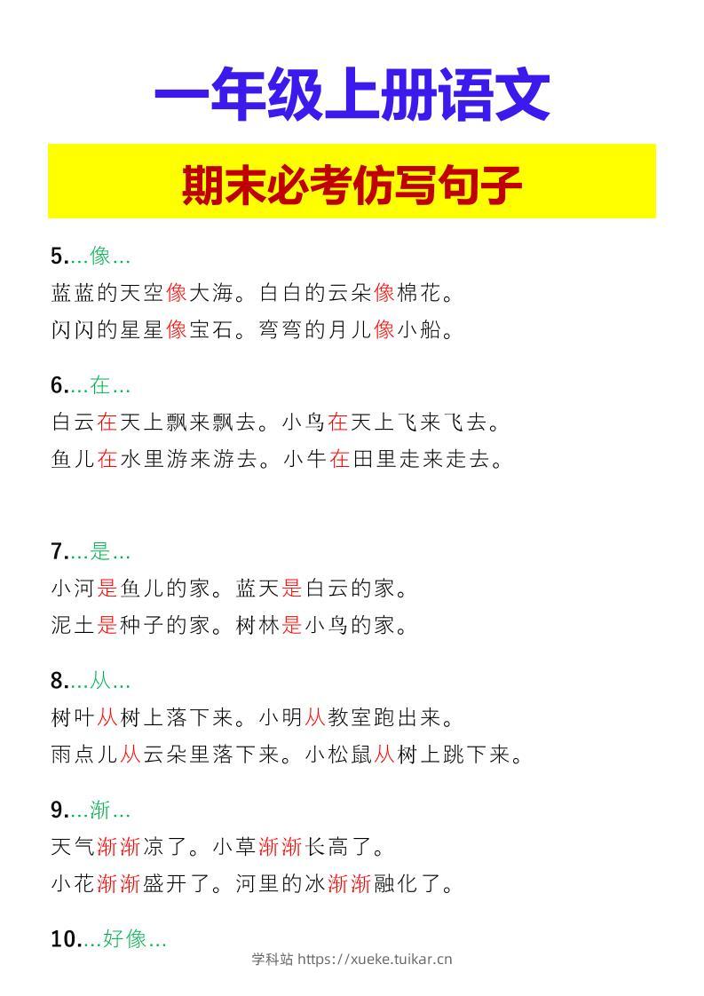 【2025秋新版】一年级上册语文期末必考仿写句子admin7月29日发布关注私信02613【2025秋新版】一年级上册语文期末必考仿写句子此内容为付费资源,请付费后查看会员专属资源黄金会员免费您暂无购买权限,请先开通会员开通会员格式pdf页数3 页大小96.63 KB付费资源 ——预览已结束,还剩1页未读——开通会员后可免费下载高清完整文档 © 版权声明文章版权归作者所有,未经允许请勿转载。THE END小学语文 喜欢就支持一下吧点赞13 分享QQ空间微博QQ好友海报分享复制链接收藏