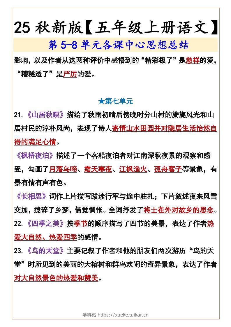 【2025秋新版】【五年级上册语文】第5-8单元各课中心思想总结admin7月31日发布关注私信02815【2025秋新版】【五年级上册语文】第5-8单元各课中心思想总结此内容为付费资源,请付费后查看会员专属资源黄金会员免费您暂无购买权限,请先开通会员开通会员格式pdf页数3 页大小82.53 KB付费资源 ——预览已结束,还剩1页未读——开通会员后可免费下载高清完整文档 © 版权声明文章版权归作者所有,未经允许请勿转载。THE END小学语文 喜欢就支持一下吧点赞15 分享QQ空间微博QQ好友海报分享复制链接收藏
