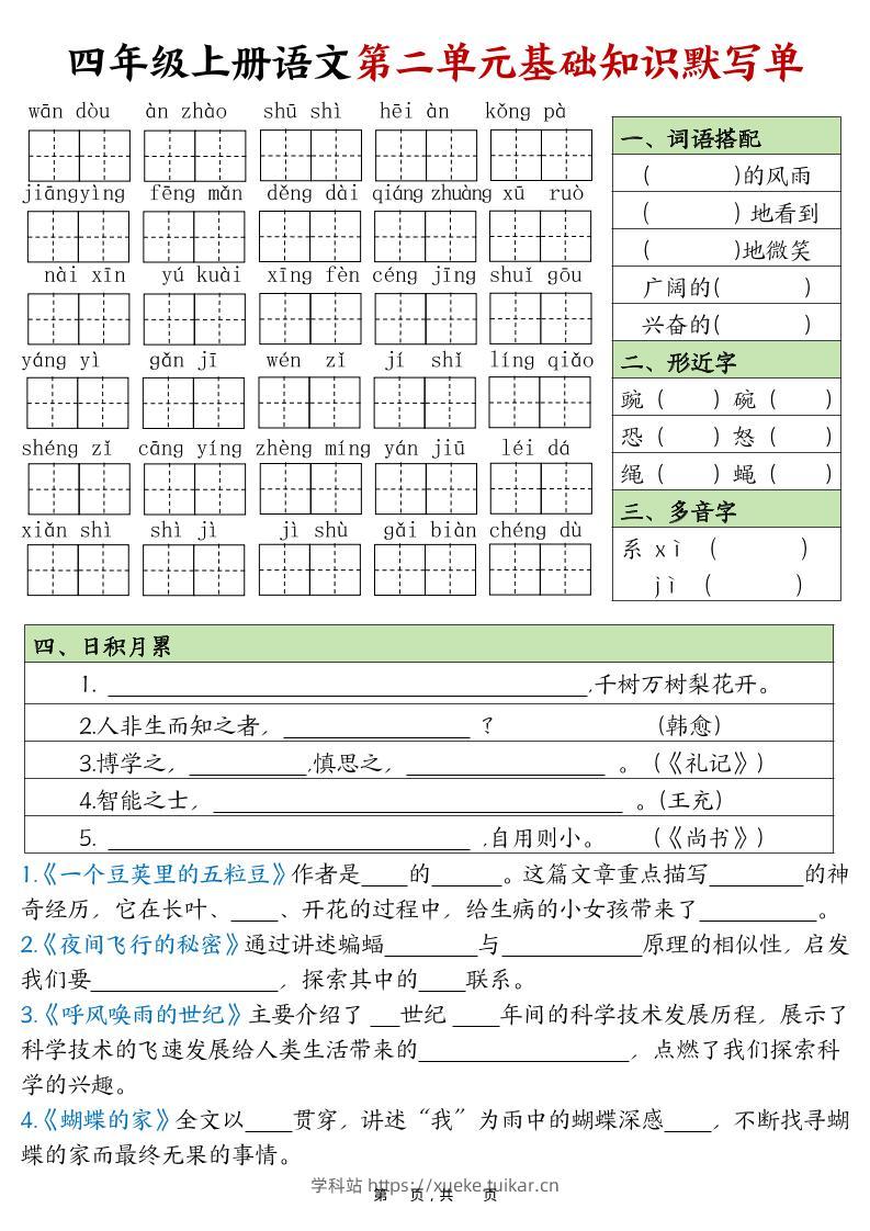 四上语文1-8单元基础知识默写单(含答案16页)admin8月2日发布关注私信03511四上语文1-8单元基础知识默写单(含答案16页)此内容为付费资源,请付费后查看会员专属资源黄金会员免费您暂无购买权限,请先开通会员开通会员格式pdf页数16 页大小780.30 KB付费资源 ——预览已结束,还剩14页未读——开通会员后可免费下载高清完整文档 © 版权声明文章版权归作者所有,未经允许请勿转载。THE END小学语文 喜欢就支持一下吧点赞11 分享QQ空间微博QQ好友海报分享复制链接收藏