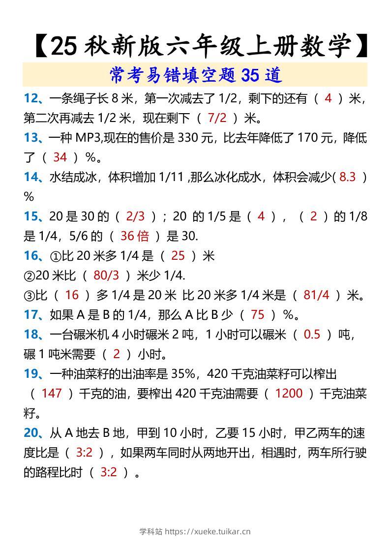 【2025秋新版】【六年级上册数学】常考易错填空题35道admin8月7日发布关注私信0305【2025秋新版】【六年级上册数学】常考易错填空题35道此内容为付费资源,请付费后查看会员专属资源黄金会员免费您暂无购买权限,请先开通会员开通会员格式pdf页数4 页大小126.27 KB付费资源 ——预览已结束,还剩2页未读——开通会员后可免费下载高清完整文档 © 版权声明文章版权归作者所有,未经允许请勿转载。THE END小学数学 喜欢就支持一下吧点赞5 分享QQ空间微博QQ好友海报分享复制链接收藏