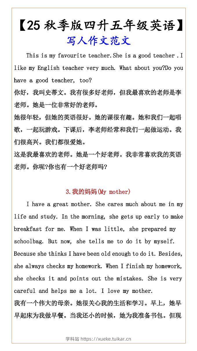 【2025秋新版】【四升五年级英语】写人作文范文-五上英语admin8月11日发布关注私信04611【2025秋新版】【四升五年级英语】写人作文范文-五上英语此内容为付费资源,请付费后查看会员专属资源黄金会员免费您暂无购买权限,请先开通会员开通会员格式pdf页数3 页大小69.44 KB付费资源 ——预览已结束,还剩1页未读——开通会员后可免费下载高清完整文档 © 版权声明文章版权归作者所有,未经允许请勿转载。THE END小学英语 喜欢就支持一下吧点赞11 分享QQ空间微博QQ好友海报分享复制链接收藏