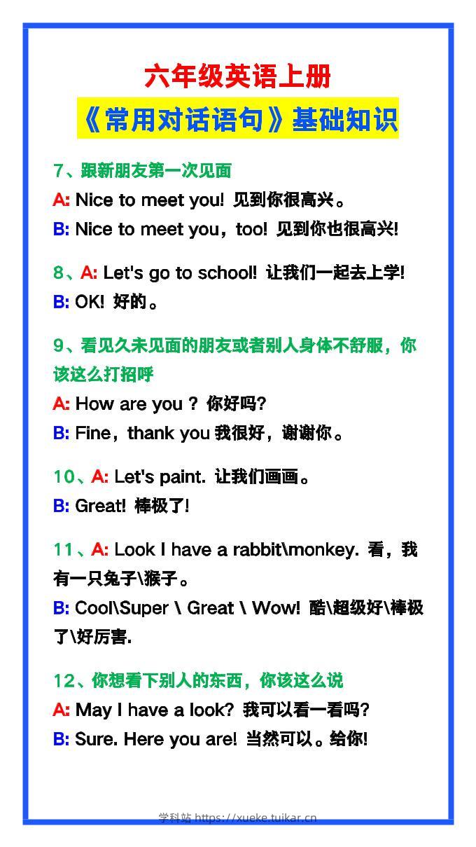 【2025秋新版】六年级英语上册《常用对话语句》admin8月11日发布关注私信0255【2025秋新版】六年级英语上册《常用对话语句》此内容为付费资源,请付费后查看会员专属资源黄金会员免费您暂无购买权限,请先开通会员开通会员格式pdf页数3 页大小37.65 KB付费资源 ——预览已结束,还剩1页未读——开通会员后可免费下载高清完整文档 © 版权声明文章版权归作者所有,未经允许请勿转载。THE END小学英语 喜欢就支持一下吧点赞5 分享QQ空间微博QQ好友海报分享复制链接收藏