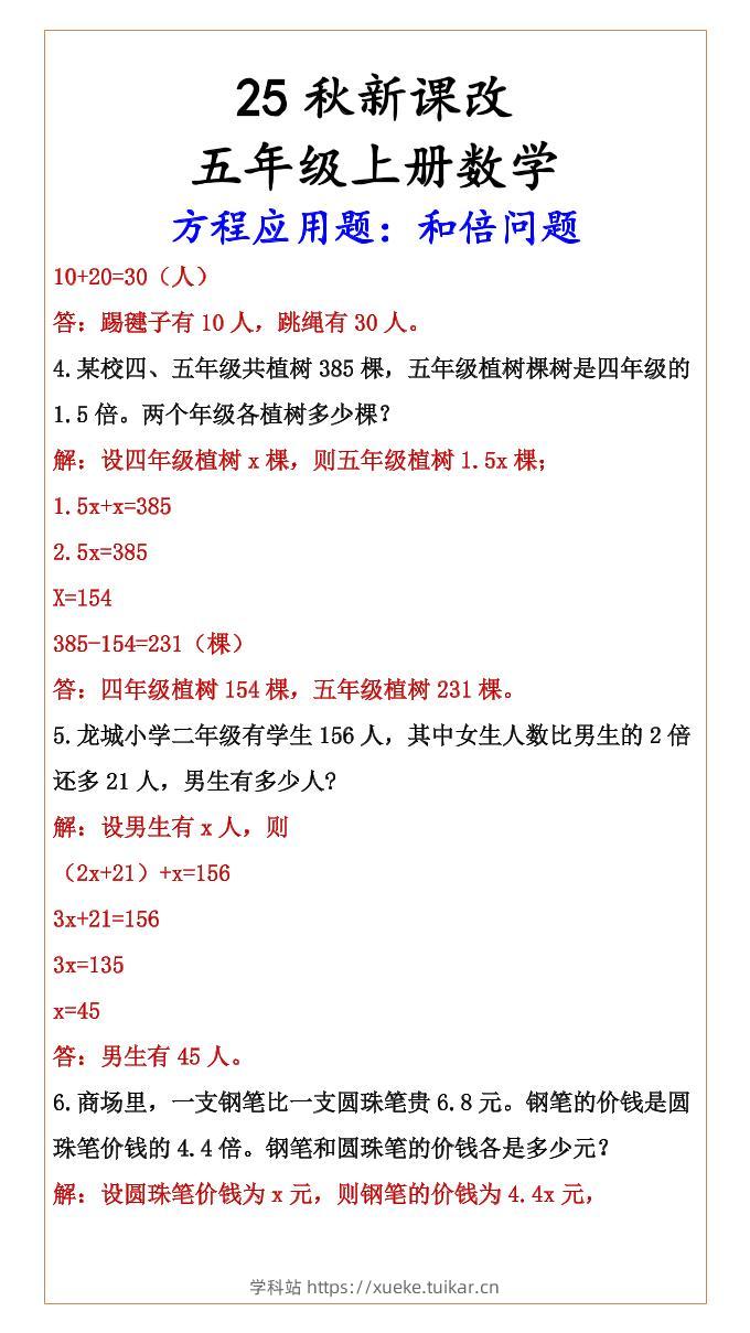 【2025秋新版】六年级上册数学方程应用题:和倍问题admin8月23日发布关注私信0466【2025秋新版】六年级上册数学方程应用题:和倍问题此内容为付费资源,请付费后查看会员专属资源黄金会员免费您暂无购买权限,请先开通会员开通会员格式pdf页数6 页大小66.70 KB付费资源 ——预览已结束,还剩4页未读——开通会员后可免费下载高清完整文档 © 版权声明文章版权归作者所有,未经允许请勿转载。THE END小学数学 喜欢就支持一下吧点赞6 分享QQ空间微博QQ好友海报分享复制链接收藏