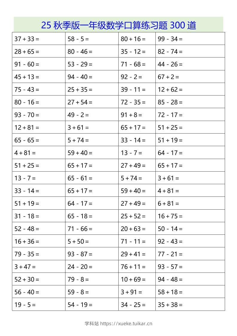 【2025秋新版】一年级数学口算练习题300道-一上数学admin8月25日发布关注私信0338【2025秋新版】一年级数学口算练习题300道-一上数学此内容为付费资源,请付费后查看会员专属资源黄金会员免费您暂无购买权限,请先开通会员开通会员格式pdf页数5 页大小58.92 KB付费资源 ——预览已结束,还剩3页未读——开通会员后可免费下载高清完整文档 © 版权声明文章版权归作者所有,未经允许请勿转载。THE END小学数学 喜欢就支持一下吧点赞8 分享QQ空间微博QQ好友海报分享复制链接收藏