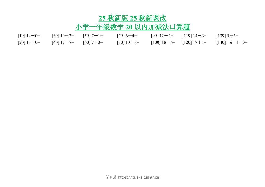 【2025秋新版】小学一年级数学20以内加减法口算题-一上数学admin8月25日发布关注私信04413【2025秋新版】小学一年级数学20以内加减法口算题-一上数学此内容为付费资源,请付费后查看会员专属资源黄金会员免费您暂无购买权限,请先开通会员开通会员格式pdf页数20 页大小79.79 KB付费资源 ——预览已结束,还剩18页未读——开通会员后可免费下载高清完整文档 © 版权声明文章版权归作者所有,未经允许请勿转载。THE END小学数学 喜欢就支持一下吧点赞13 分享QQ空间微博QQ好友海报分享复制链接收藏