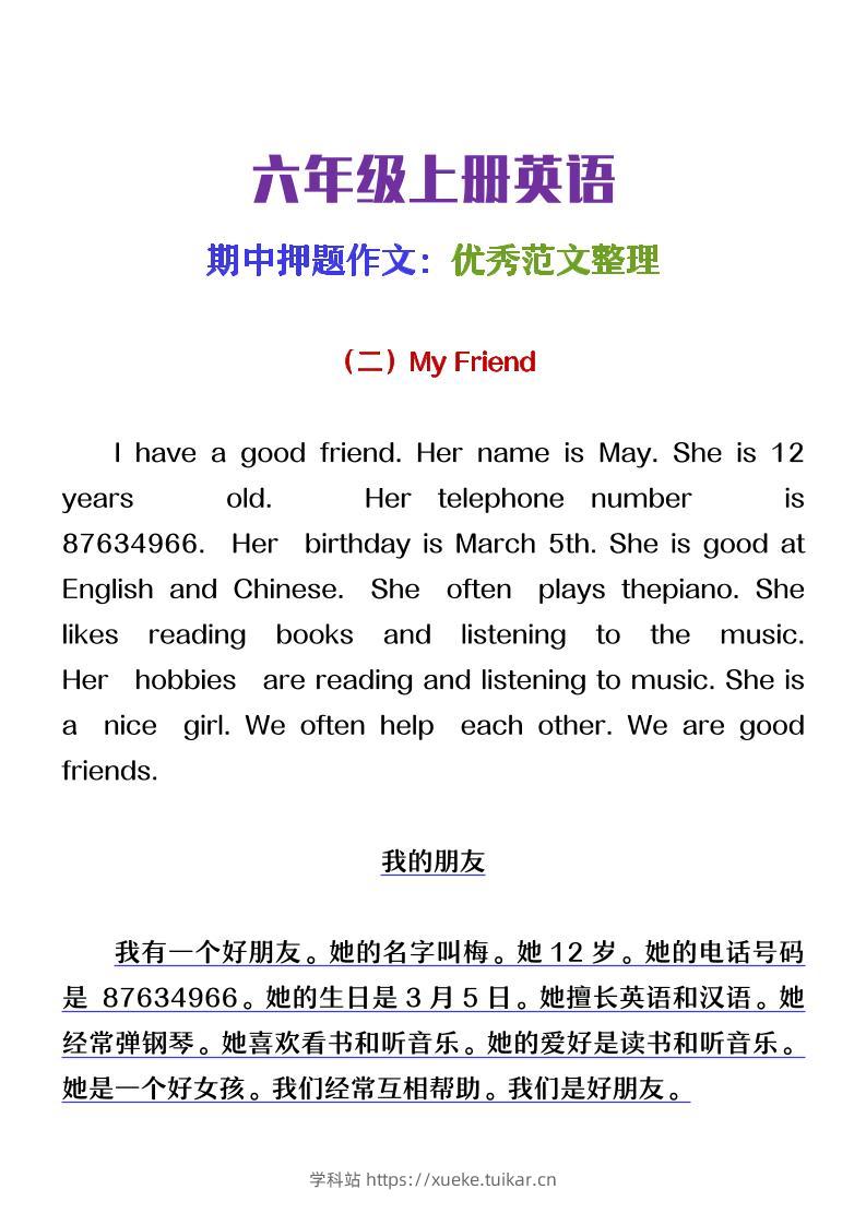 【2025秋新版】六年级上册英语期中押题作文优秀范文整理admin8月29日发布关注私信0405【2025秋新版】六年级上册英语期中押题作文优秀范文整理此内容为付费资源,请付费后查看会员专属资源黄金会员免费您暂无购买权限,请先开通会员开通会员格式pdf页数5 页大小94.84 KB付费资源 ——预览已结束,还剩3页未读——开通会员后可免费下载高清完整文档 © 版权声明文章版权归作者所有,未经允许请勿转载。THE END小学英语 喜欢就支持一下吧点赞5 分享QQ空间微博QQ好友海报分享复制链接收藏
