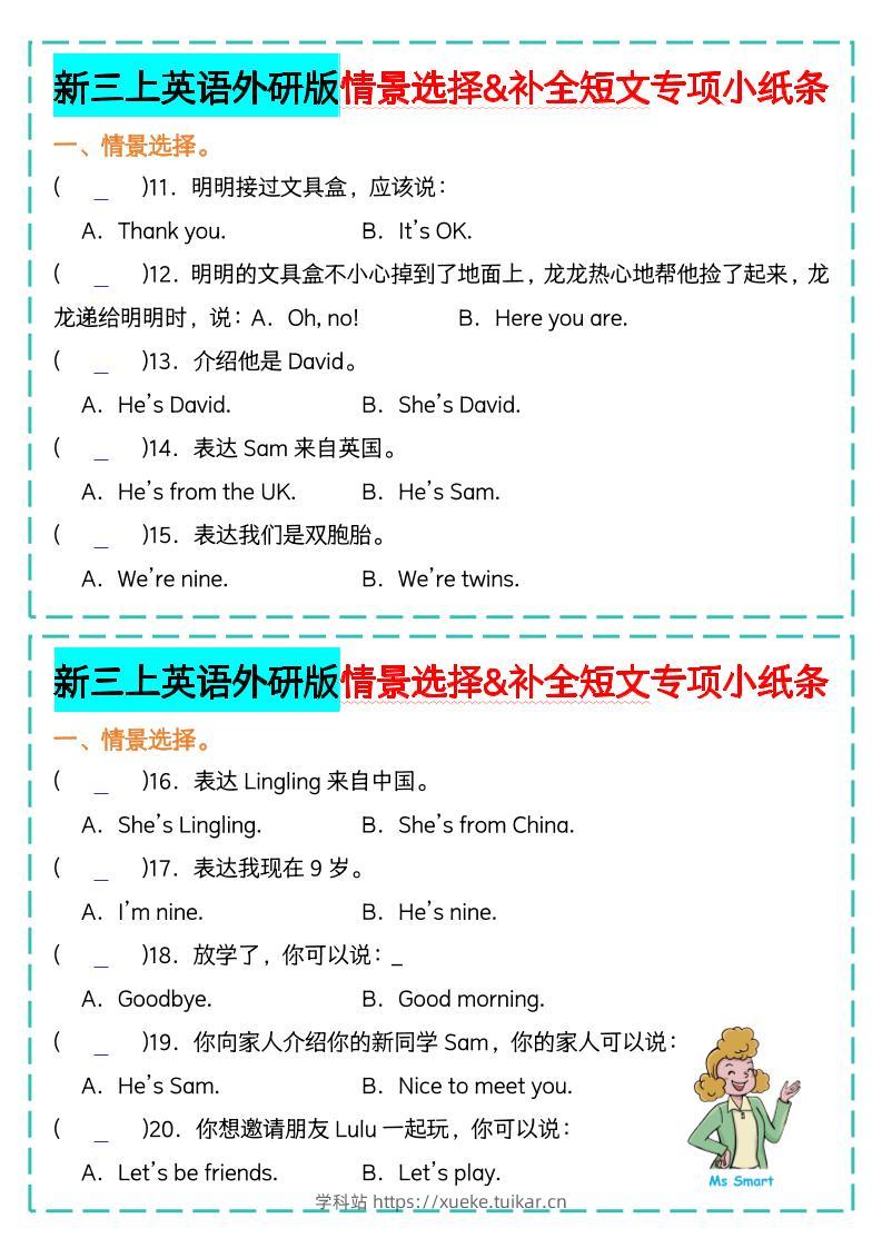 新三上英语外研版情景选择补全短文专项小纸条admin9月17日发布关注私信0416新三上英语外研版情景选择补全短文专项小纸条此内容为付费资源,请付费后查看会员专属资源黄金会员免费您暂无购买权限,请先开通会员开通会员格式pdf页数10 页大小2.29 MB付费资源 ——预览已结束,还剩8页未读——开通会员后可免费下载高清完整文档 © 版权声明文章版权归作者所有,未经允许请勿转载。THE END小学英语 喜欢就支持一下吧点赞6 分享QQ空间微博QQ好友海报分享复制链接收藏