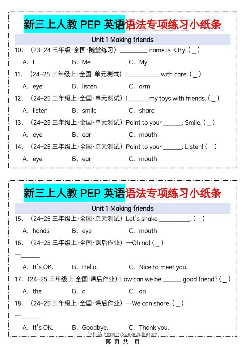 新三上人教PEP英语语法专项练习小纸条(含答案28页)admin10月3日发布关注私信0259新三上人教PEP英语语法专项练习小纸条(含答案28页)此内容为付费资源,请付费后查看会员专属资源黄金会员免费您暂无购买权限,请先开通会员开通会员格式pdf页数28 页大小793.30 KB付费资源 ——预览已结束,还剩26页未读——开通会员后可免费下载高清完整文档 © 版权声明文章版权归作者所有,未经允许请勿转载。THE END小学英语 喜欢就支持一下吧点赞9 分享QQ空间微博QQ好友海报分享复制链接收藏