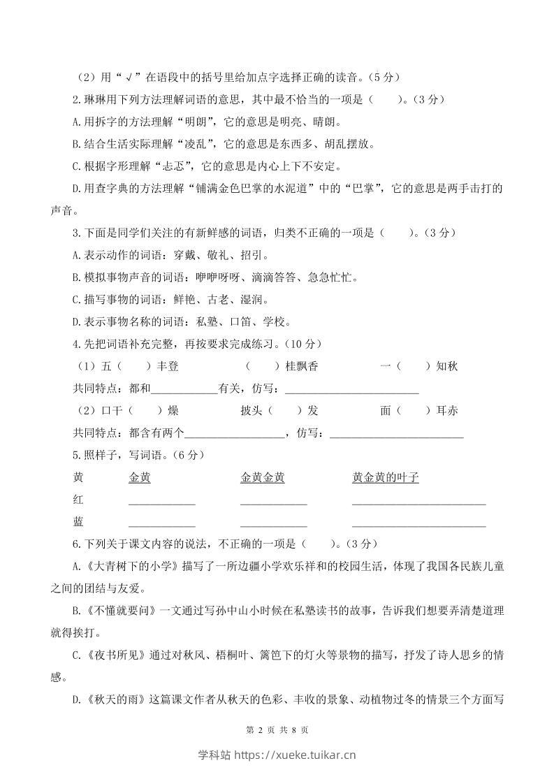 25-26学年三上语文第一次月考质量检测卷(含答题卡+答案16页)admin10月17日发布关注私信020525-26学年三上语文第一次月考质量检测卷(含答题卡+答案16页)此内容为付费资源,请付费后查看会员专属资源黄金会员免费您暂无购买权限,请先开通会员开通会员格式pdf页数16 页大小1.30 MB付费资源 ——预览已结束,还剩14页未读——开通会员后可免费下载高清完整文档 © 版权声明文章版权归作者所有,未经允许请勿转载。THE END小学语文 喜欢就支持一下吧点赞5 分享QQ空间微博QQ好友海报分享复制链接收藏