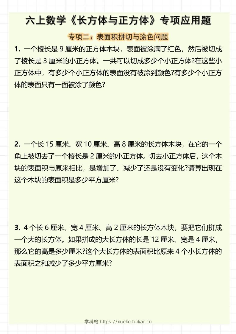 六上数学《长方体与正方体》专项应用题(含答案8页)admin10月23日发布关注私信05015六上数学《长方体与正方体》专项应用题(含答案8页)此内容为付费资源,请付费后查看会员专属资源黄金会员免费您暂无购买权限,请先开通会员开通会员格式pdf页数8 页大小878.65 KB付费资源 ——预览已结束,还剩6页未读——开通会员后可免费下载高清完整文档 © 版权声明文章版权归作者所有,未经允许请勿转载。THE END小学数学 喜欢就支持一下吧点赞15 分享QQ空间微博QQ好友海报分享复制链接收藏